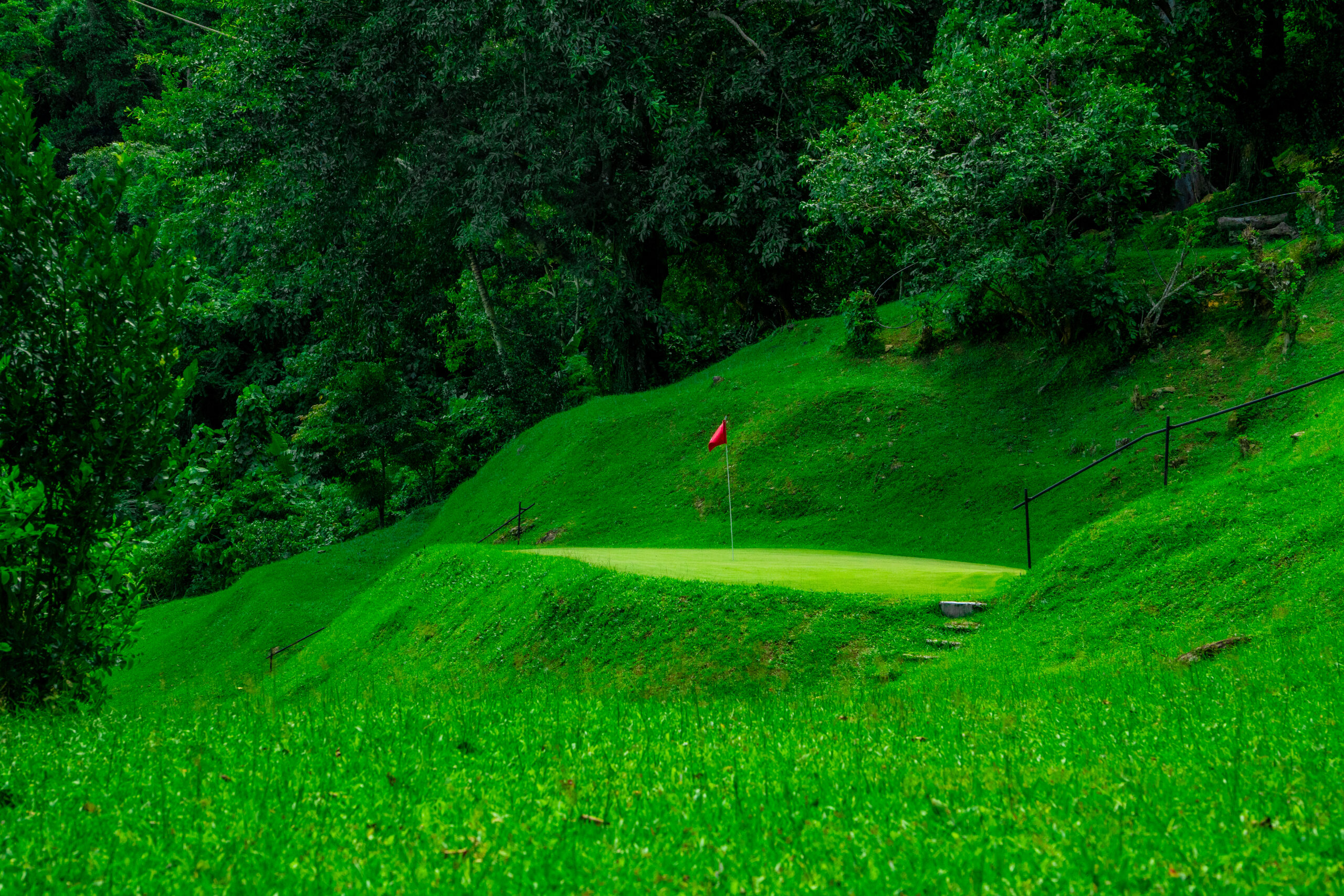A few holes really stand out. Hole three is a downhill par-4 with a narrow landing area and a blind approach. The fourth hole is perhaps the country's shortest par-4, measuring just 157 yards, with a blind tee shot over a hill. Trust the caddie's aim point and fire away!